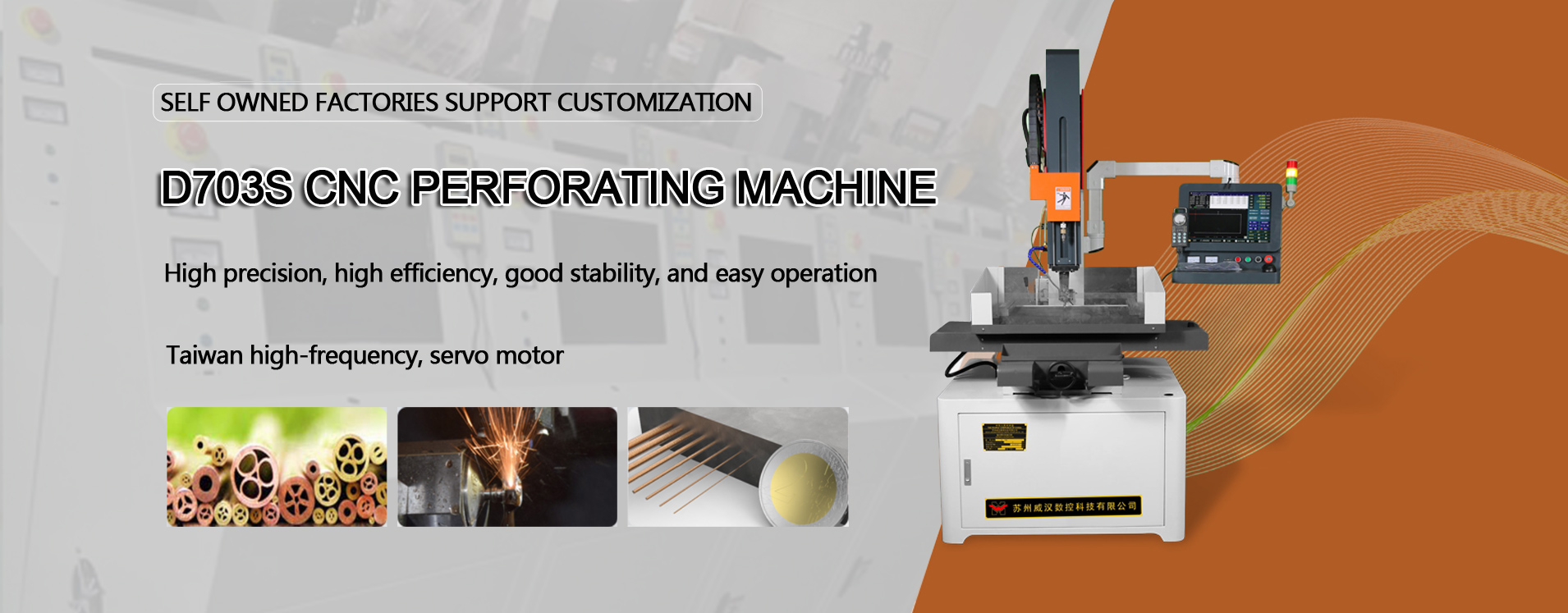威汉数控(泰州)有限公司拥有两大生产基地,分别位于泰州和苏州。工厂占地面积8000平方米,拥有员工50人,拥有20年的生产和销售经验。主要生产研发:数控穿孔机、中走丝线切割、快走丝线切割、慢走丝线切割、穿孔机、中走丝线切割、火花机、穿孔机等各种加工产品以及各种加工设备。